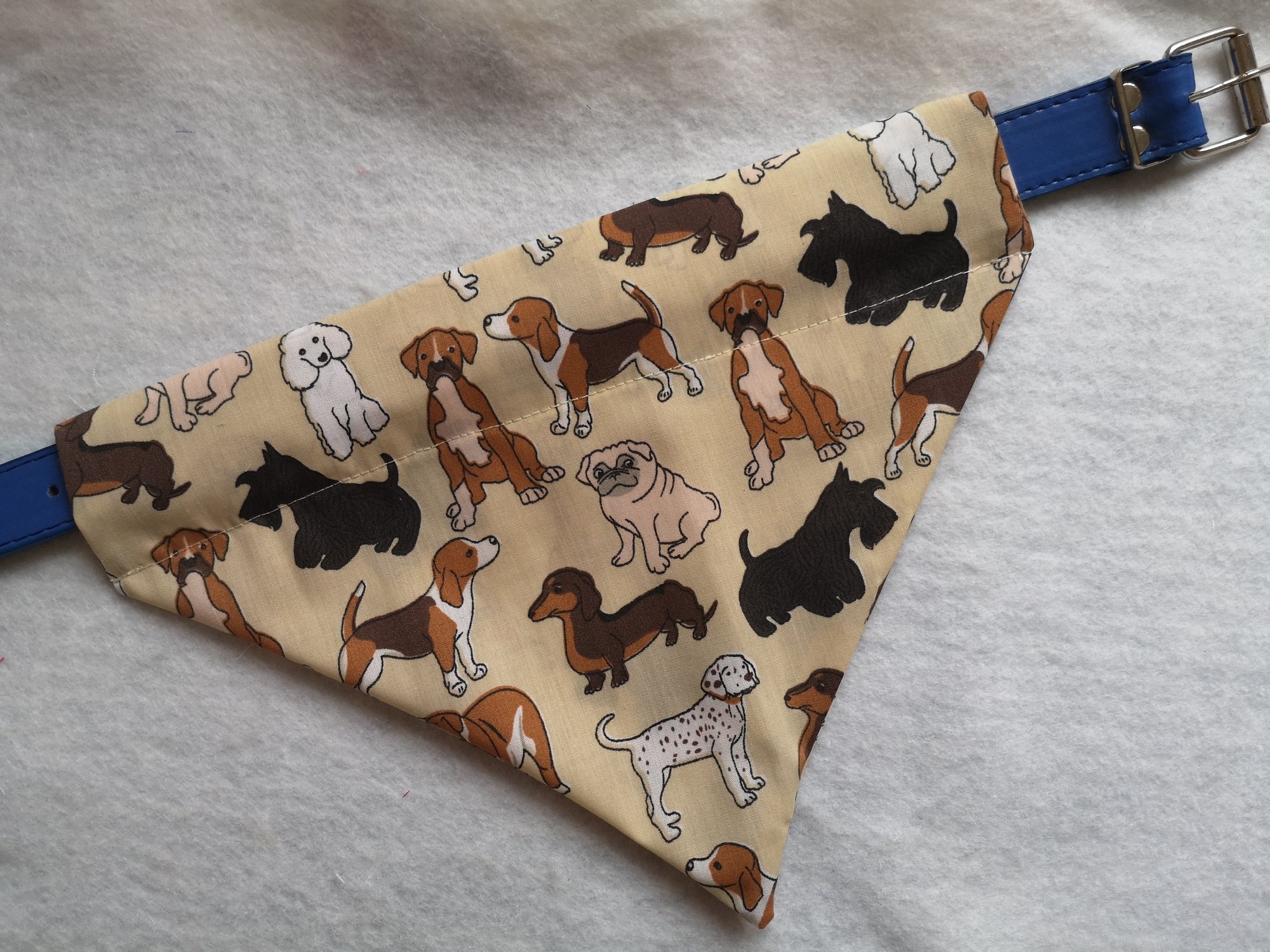 Want to spoil your dog with a bespoke gift? My doggy bandanas are handmade and slip easily onto a standard dog's collar. This assorted doggos fabric is so cute and quirky. Gorgeous on either male or female puppers. This polycotton fabric is strong and robust, so this bandana is perfect for an active pup that loves to get messy!