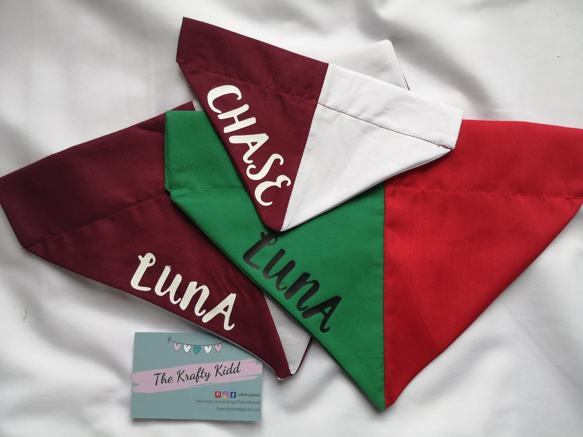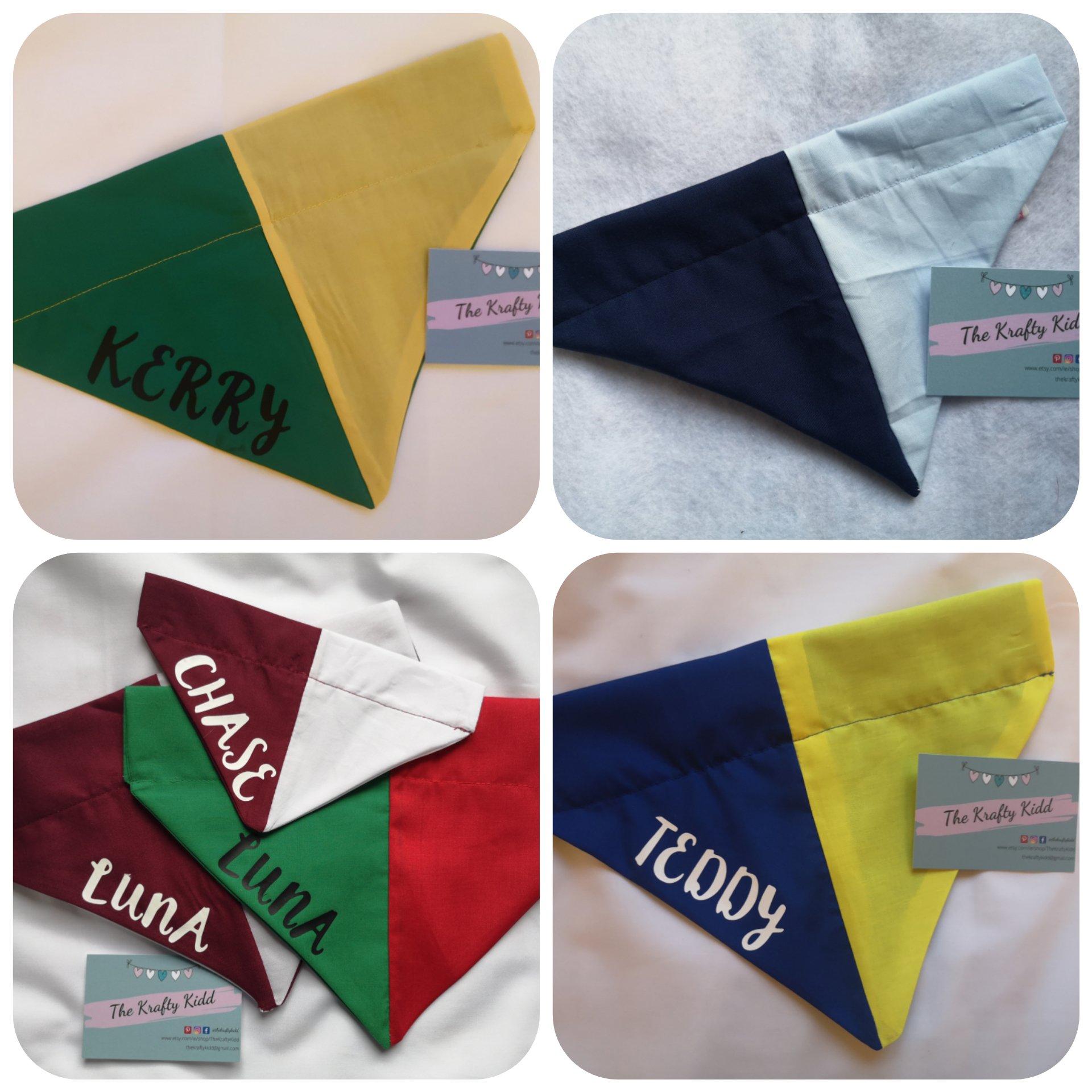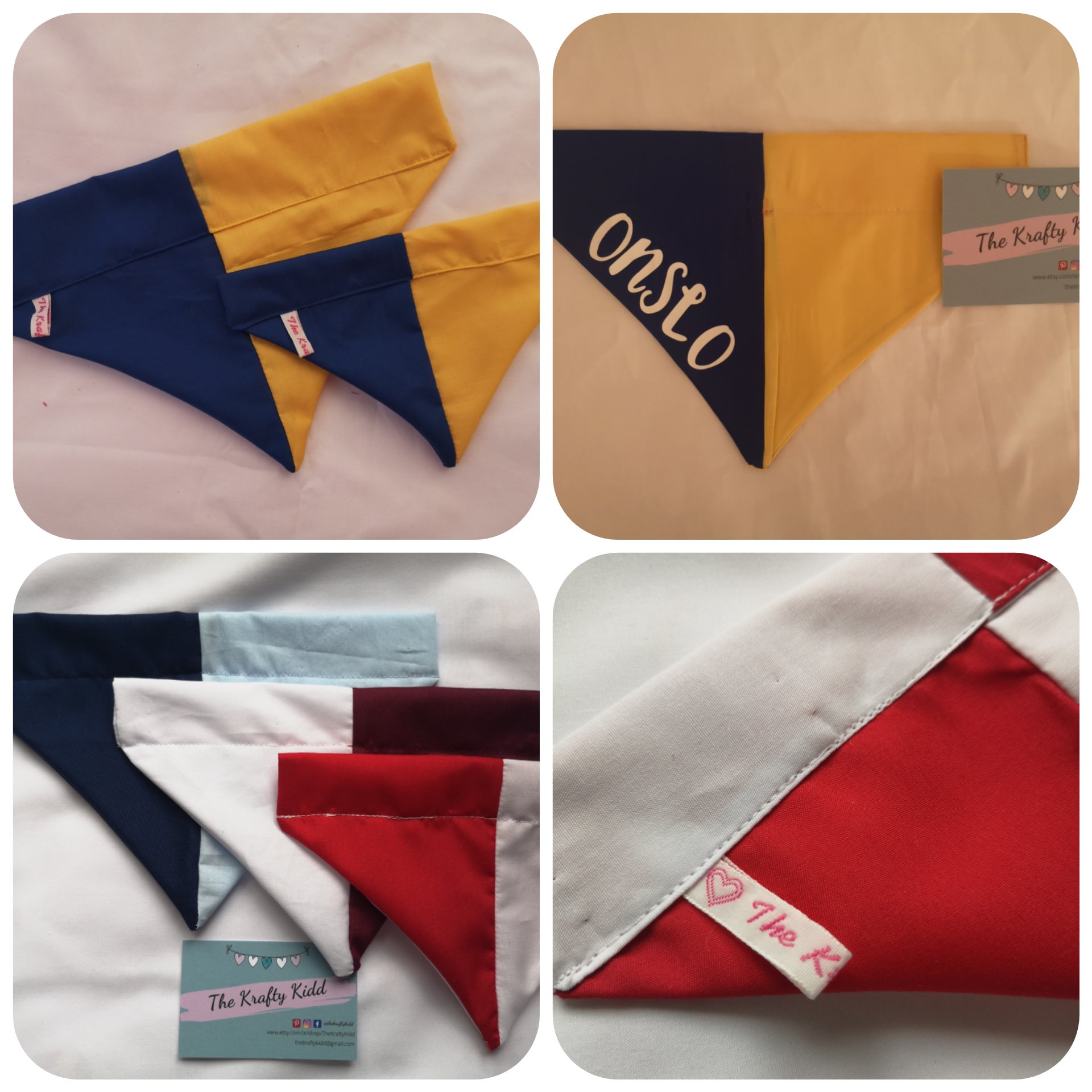 County colour doggy bandanas are all handmade and slip easily onto a standard dog's collar.