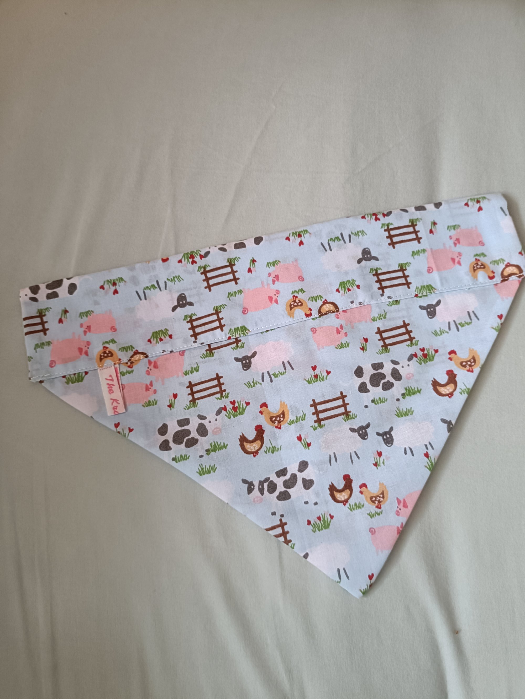 Want to spoil your dog with a bespoke gift? My doggy bandanas are handmade and slip easily onto a standard dog's collar. The farm animal Dog bandana is made from polycotton fabric sourced from Irish businesses. The fabric is thick and soft, so will feel super comfortable on your dog's neck.