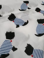 Want to spoil your dog with a bespoke gift? My doggy bandanas are handmade and slip easily onto a standard dog's collar. The NEW "Westie" Dog bandana is made from soft polycotton fabric sourced from Irish companies. This is the perfect bandana for a cute Westie or any doggo that likes to sport a dog print!