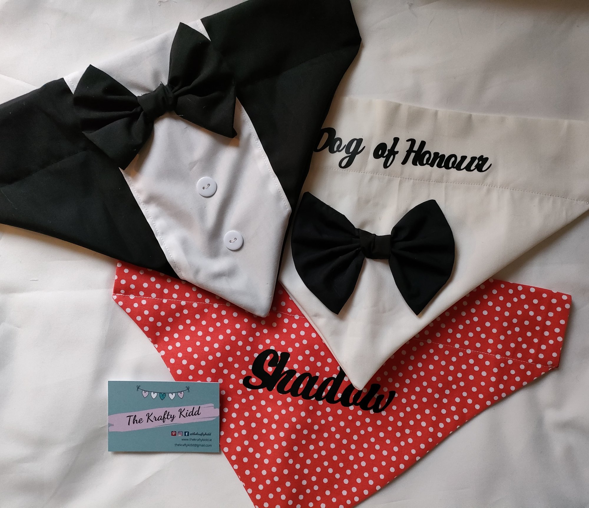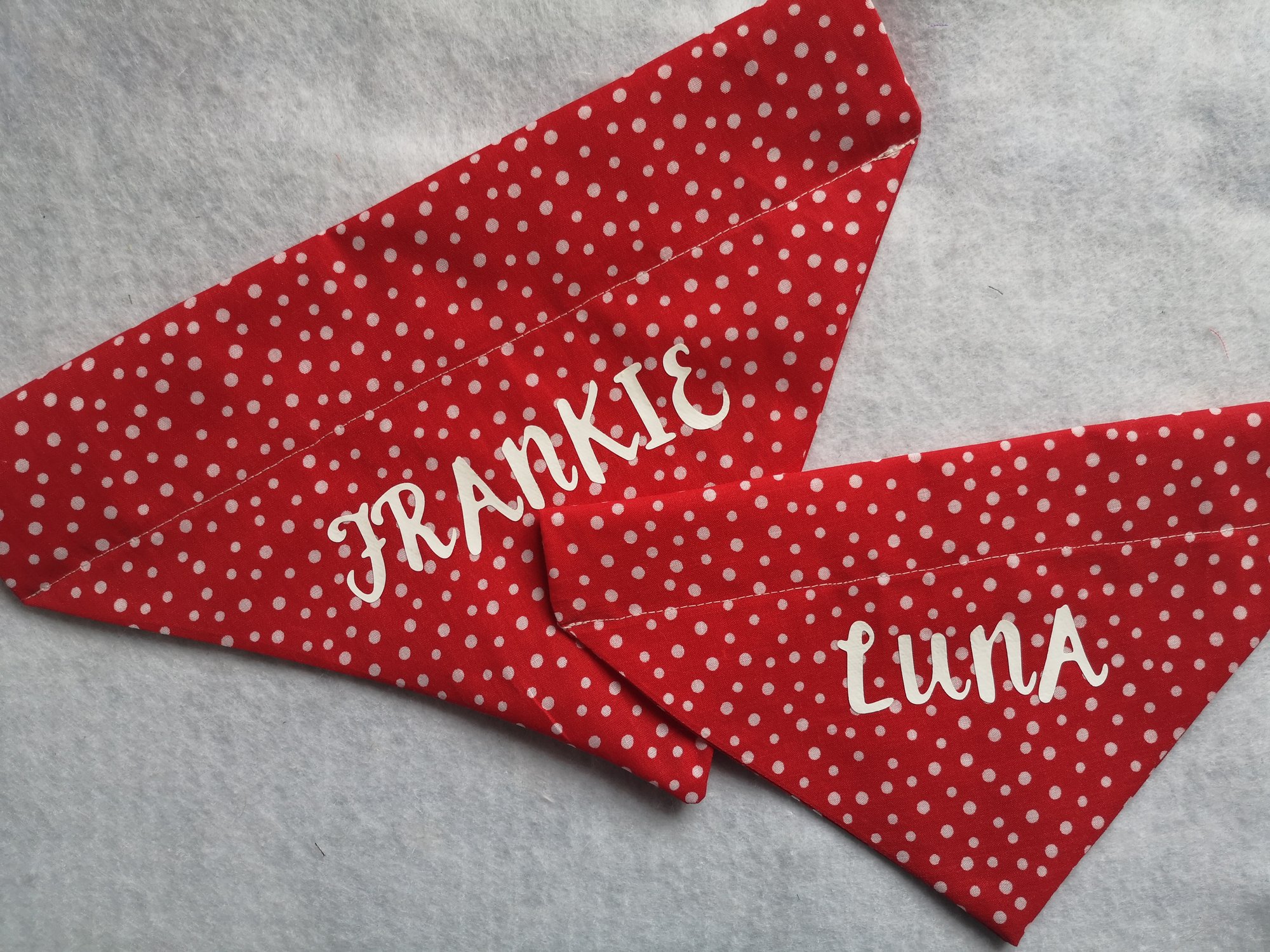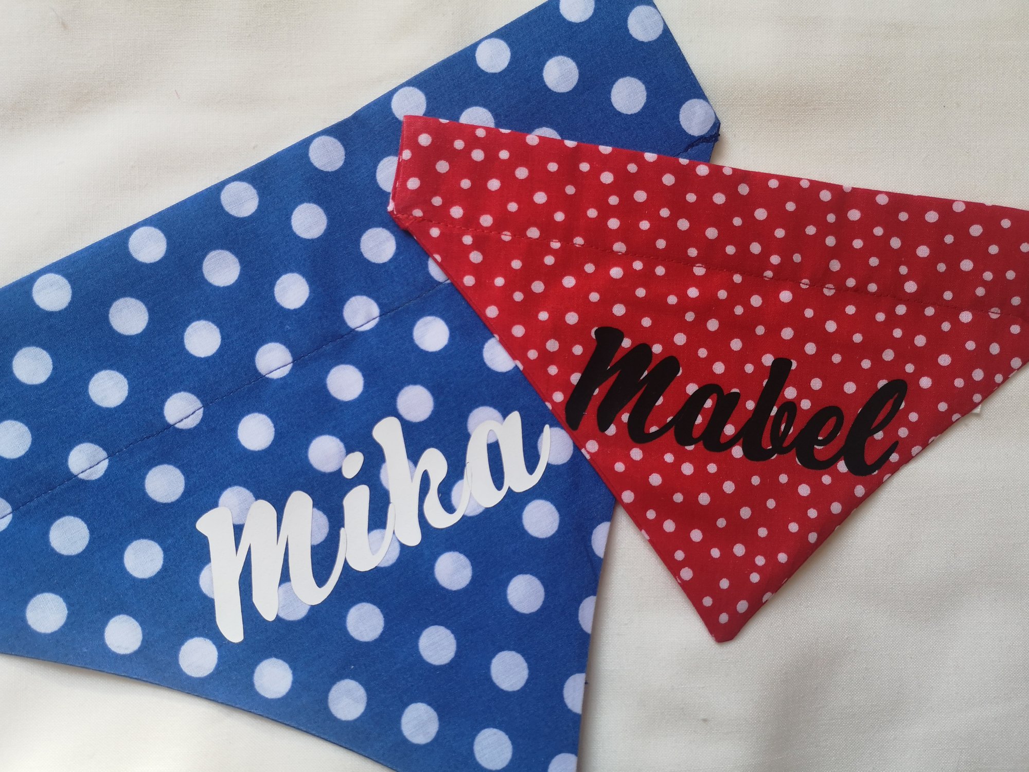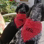 Want to spoil your dog with a bespoke gift? My doggy bandanas are handmade and slip easily onto a standard dog's collar. This gorgeous red polka dot bandana is quirky and cute. They look gorgeous on both male and female doggos. These are my most popular bandanas!